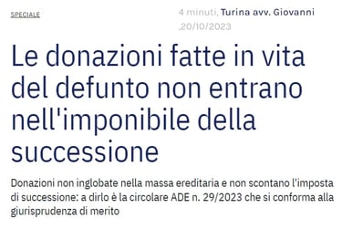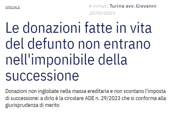 La franchigia sulle successioni è di un milione di euro, oltre si pagano le imposte.