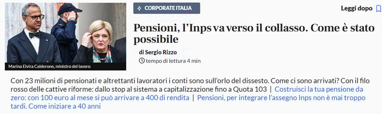 Il sistema pensionistico è vittima del cambiamento demografico in atto.
