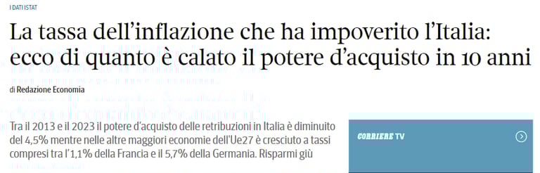 L'inflazione dimiuisce il nostro potere d'acquisto nel tempo.