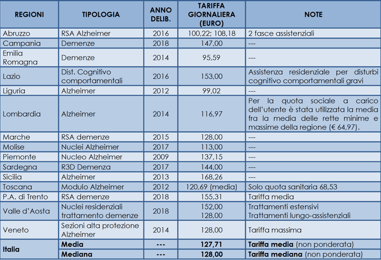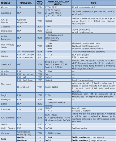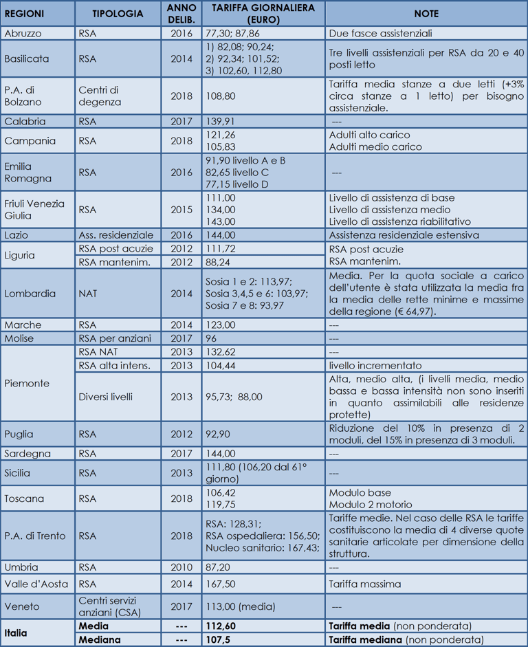 3. Tariffe giornaliere delle rsa per anziani in italia